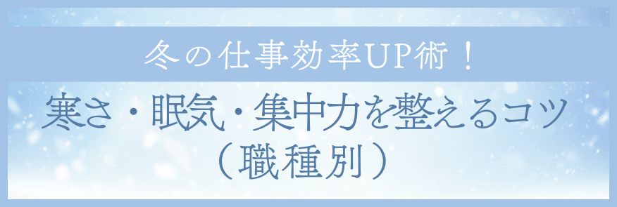 今回は、1年で最も寒いこの時期を賢く乗り切るための「寒さ・眠気・集中力」の整え方を、職種別にご紹介します!